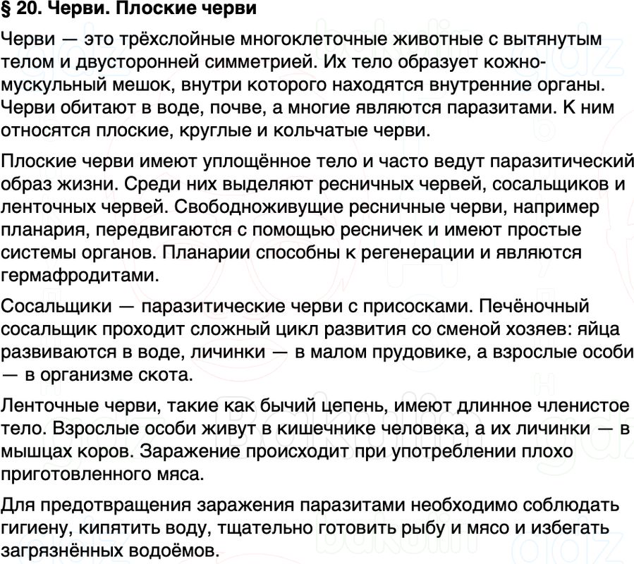 Краткое содержание Параграф 20 Черви Плоские черви