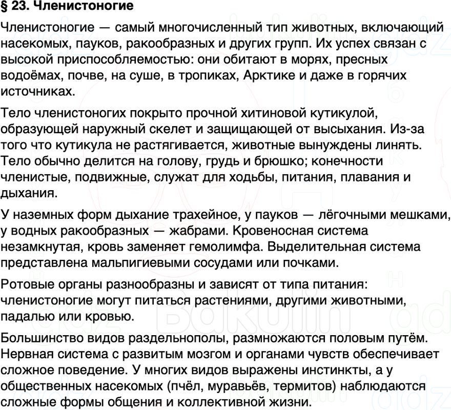 Краткое содержание Параграф 23 Членистоногие