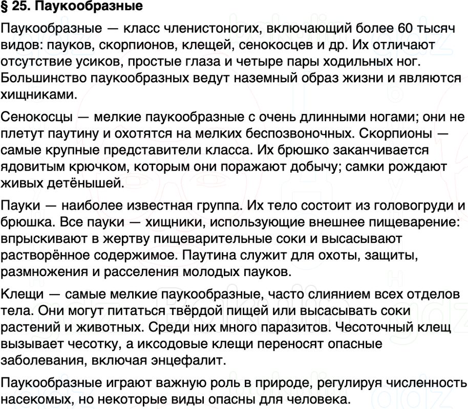 Краткое содержание Параграф 25 Паукообразные