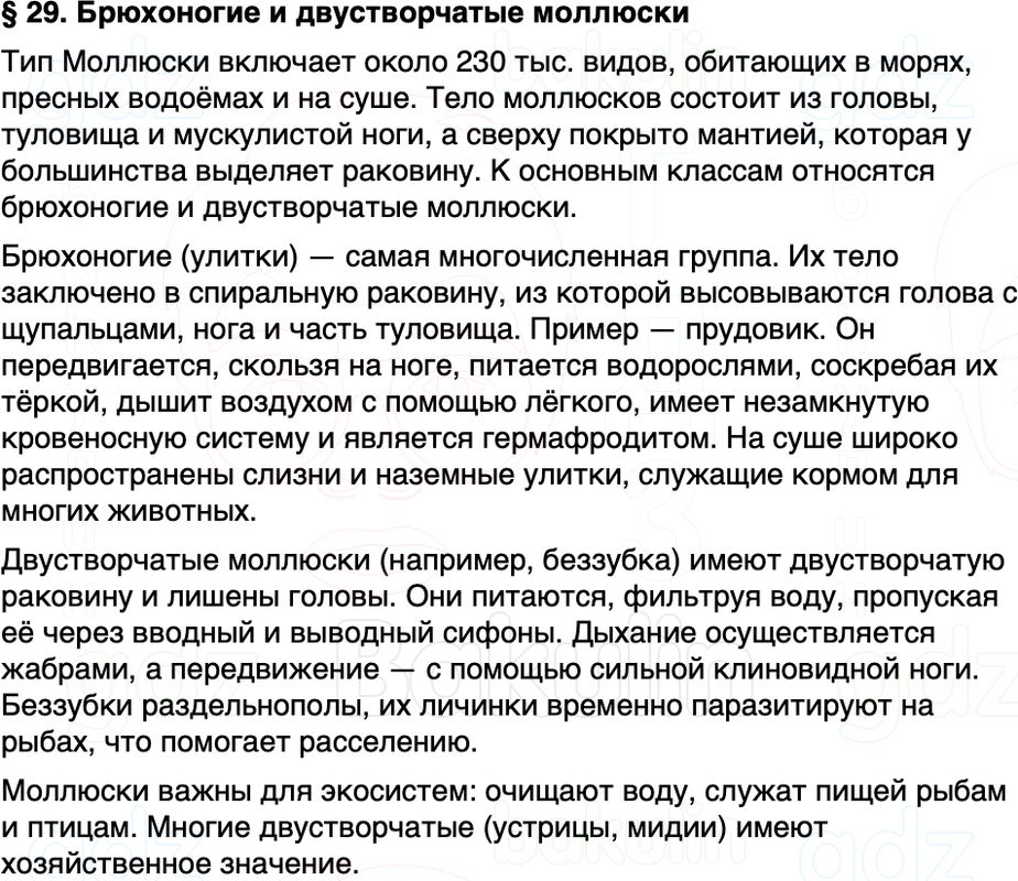 Краткое содержание Параграф 29 Брюхоногие и двустворчатые моллюски