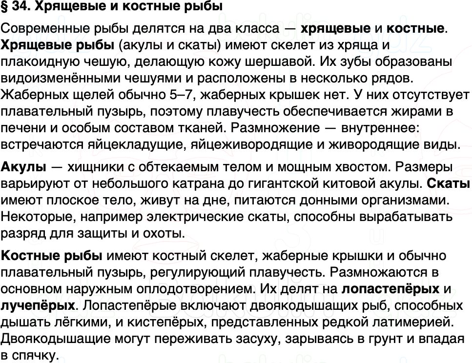 Краткое содержание Параграф 34 Хрящевые и костные рыбы