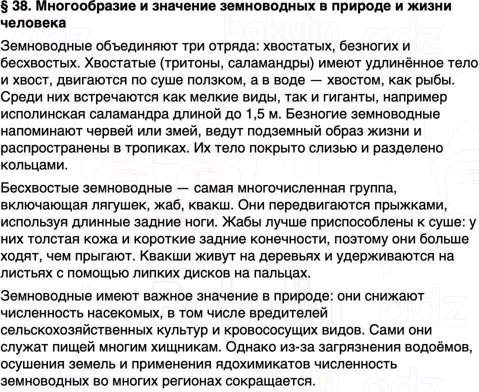 Краткое содержание Параграф 38 Многообразие и значение земноводных в природе и жизни человека
