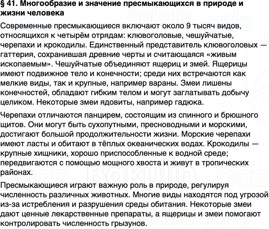 Краткое содержание Параграф 41 Многообразие и значение пресмыкающихся в природе и жизни человека