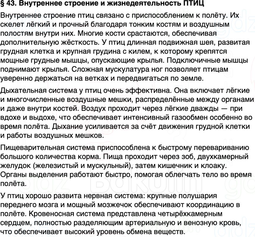 Краткое содержание Параграф 43 Внутреннее строение и жизнедеятельность ПТИЦ