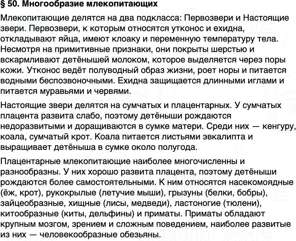 Краткое содержание Параграф 50 Многообразие млекопитающих