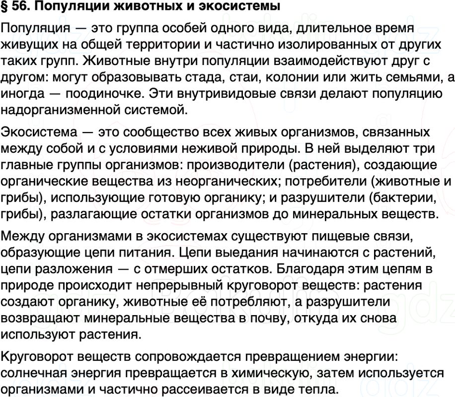 Краткое содержание Параграф 56 Популяции животных и экосистемы