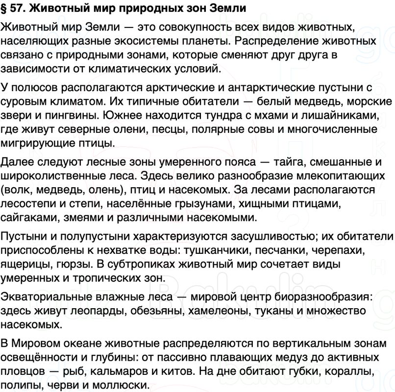 Краткое содержание Параграф 57 Животный мир природных зон Земли