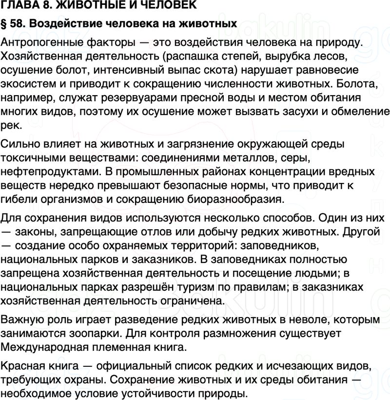 Краткое содержание Параграф 58 Воздействие человека на животных