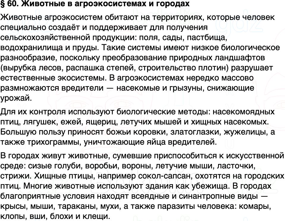 Краткое содержание Параграф 60 Животные в агроэкосистемах и городах
