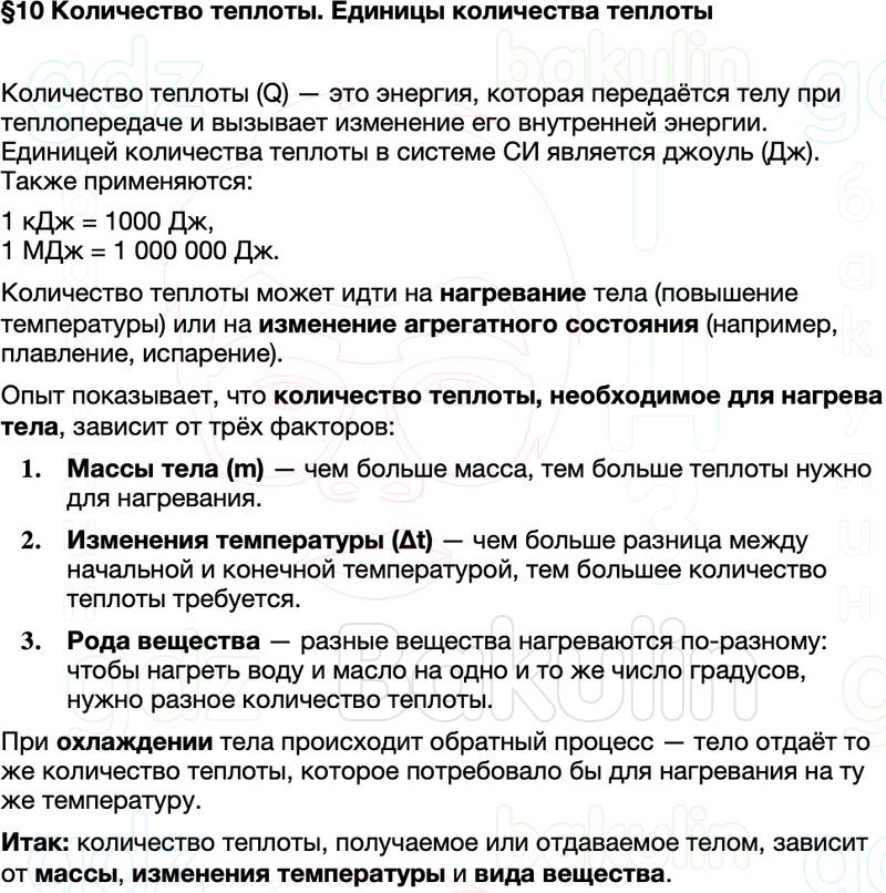 Правильный ответ к заданию Краткие пересказы и конспекты по физике 8 класса учебник Перышкин, Иванов Параграф, номер 10 бесплатно онлайн