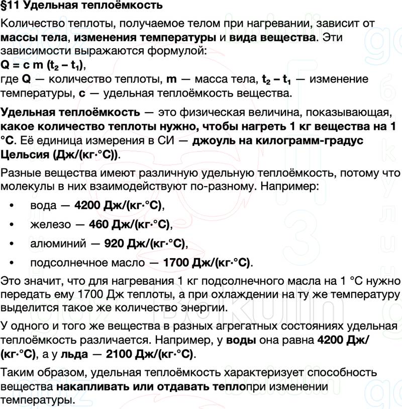 Правильный ответ к заданию Краткие пересказы и конспекты по физике 8 класса учебник Перышкин, Иванов Параграф, номер 11 бесплатно онлайн