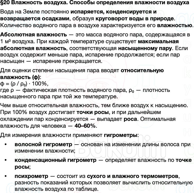Правильный ответ к заданию Краткие пересказы и конспекты по физике 8 класса учебник Перышкин, Иванов Параграф, номер 20 бесплатно онлайн