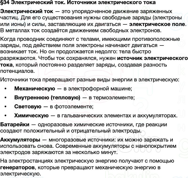 Правильный ответ к заданию Краткие пересказы и конспекты по физике 8 класса учебник Перышкин, Иванов Параграф, номер 34 бесплатно онлайн