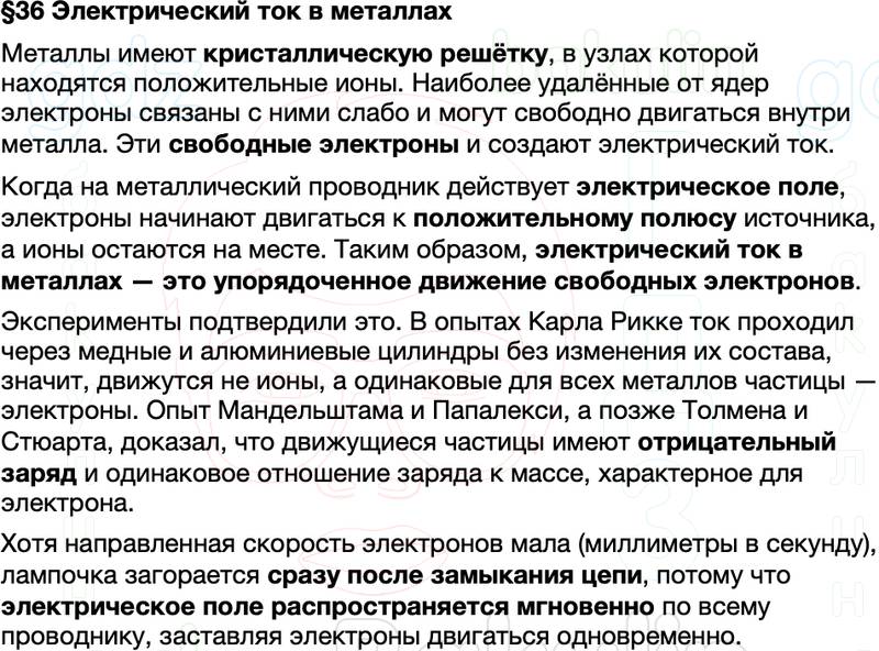 Краткие пересказы и конспекты по физике 8 класса учебник Перышкин, Иванов Параграф / 36