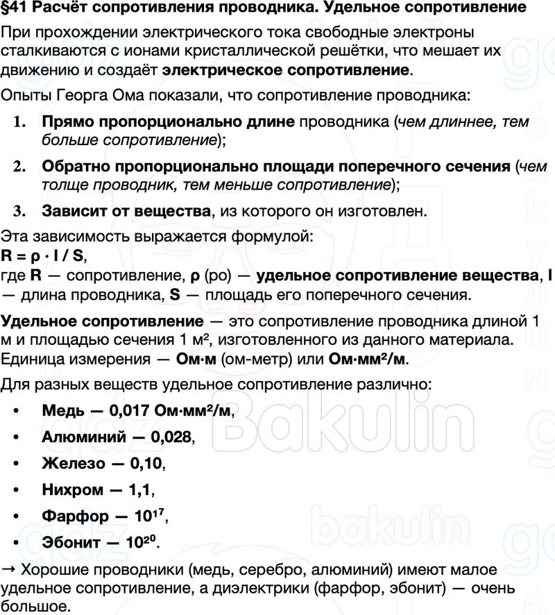 Правильный ответ к заданию Краткие пересказы и конспекты по физике 8 класса учебник Перышкин, Иванов Параграф, номер 41 бесплатно онлайн