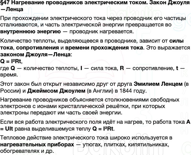 Краткие пересказы и конспекты по физике 8 класса учебник Перышкин, Иванов Параграф / 47