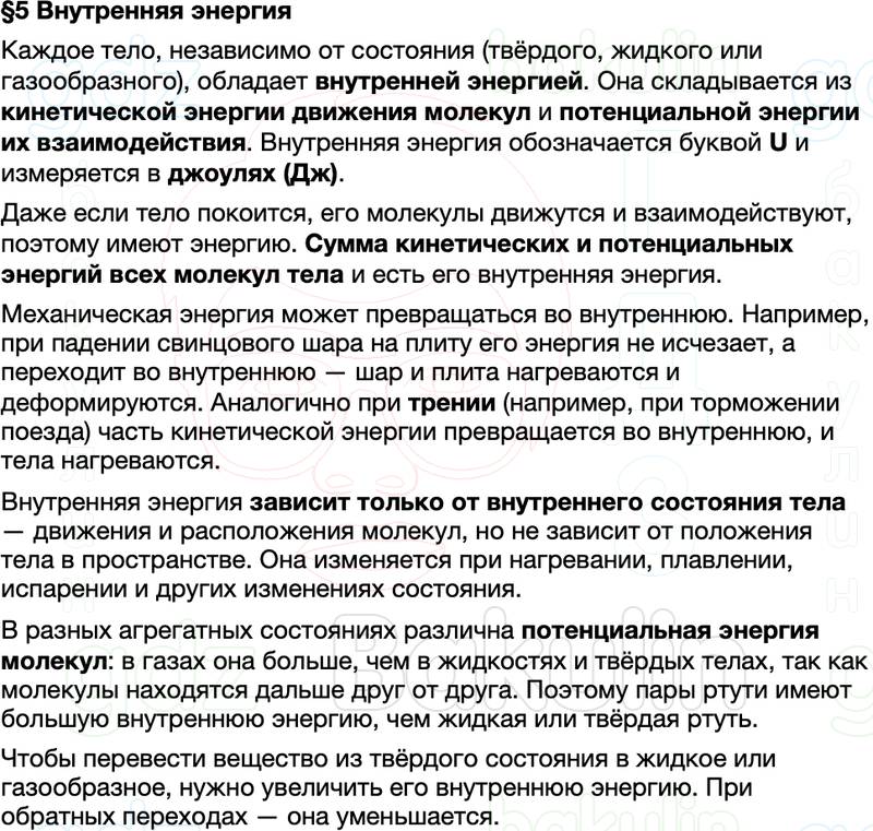 Правильный ответ к заданию Краткие пересказы и конспекты по физике 8 класса учебник Перышкин, Иванов Параграф, номер 5 бесплатно онлайн