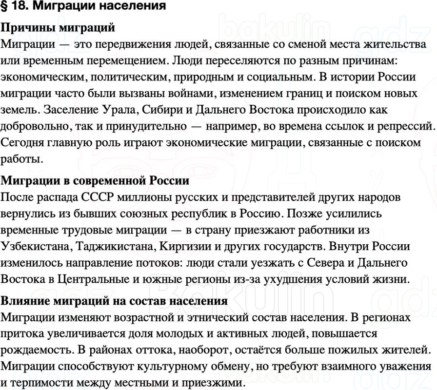 Краткое содержание пересказ Параграф 18. Миграции населения География 8 класс Алексеев, Николина Полярная звезда