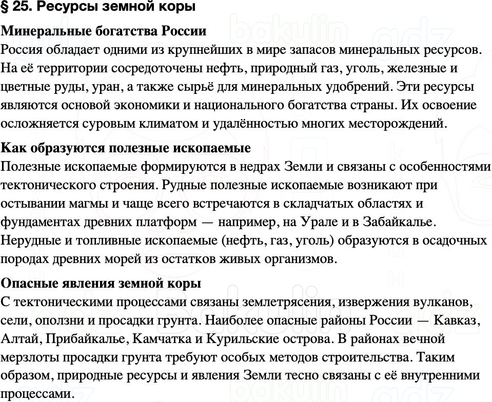 Краткое содержание пересказ Параграф 25. Ресурсы земной коры География 8 класс Алексеев, Николина Полярная звезда