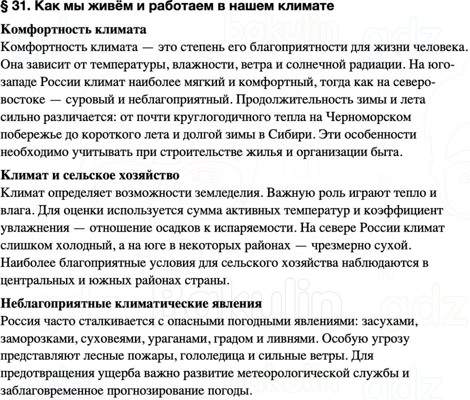 Краткое содержание пересказ Параграф 31. Как мы живём и работаем в нашем климате География 8 класс Алексеев, Николина Полярная звезда