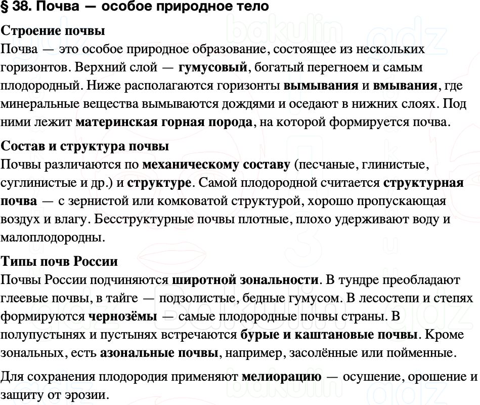 Краткое содержание пересказ Параграф 38. Почва — особое природное тело География 8 класс Алексеев, Николина Полярная звезда