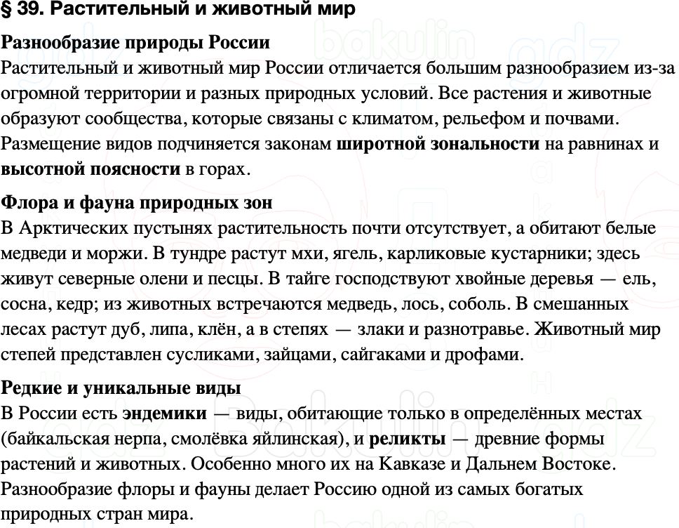 Краткое содержание пересказ Параграф 39. Растительный и животный мир География 8 класс Алексеев, Николина Полярная звезда