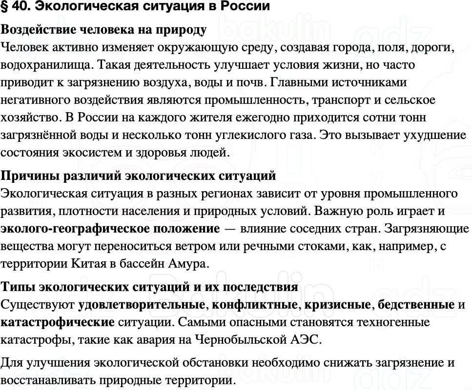 Краткое содержание пересказ Параграф 40. Экологическая ситуация в России География 8 класс Алексеев, Николина Полярная звезда