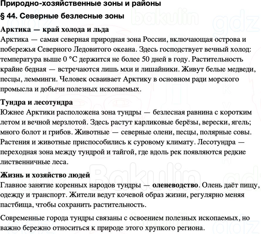 Краткое содержание пересказ Параграф 44. Северные безлесные зоны География 8 класс Алексеев, Николина Полярная звезда