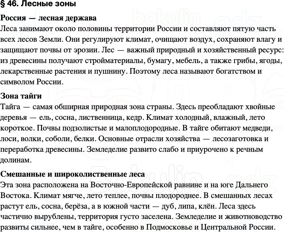 Краткое содержание пересказ Параграф 46. Лесные зоны География 8 класс Алексеев, Николина Полярная звезда