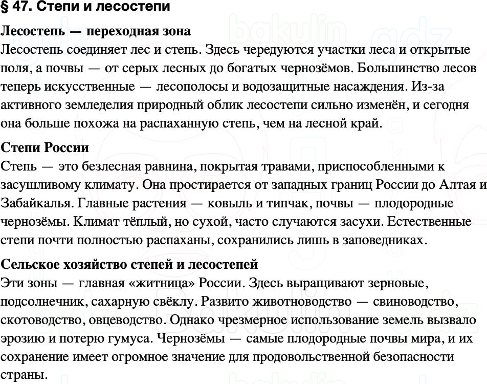Краткое содержание пересказ Параграф 47. Степи и лесостепи География 8 класс Алексеев, Николина Полярная звезда