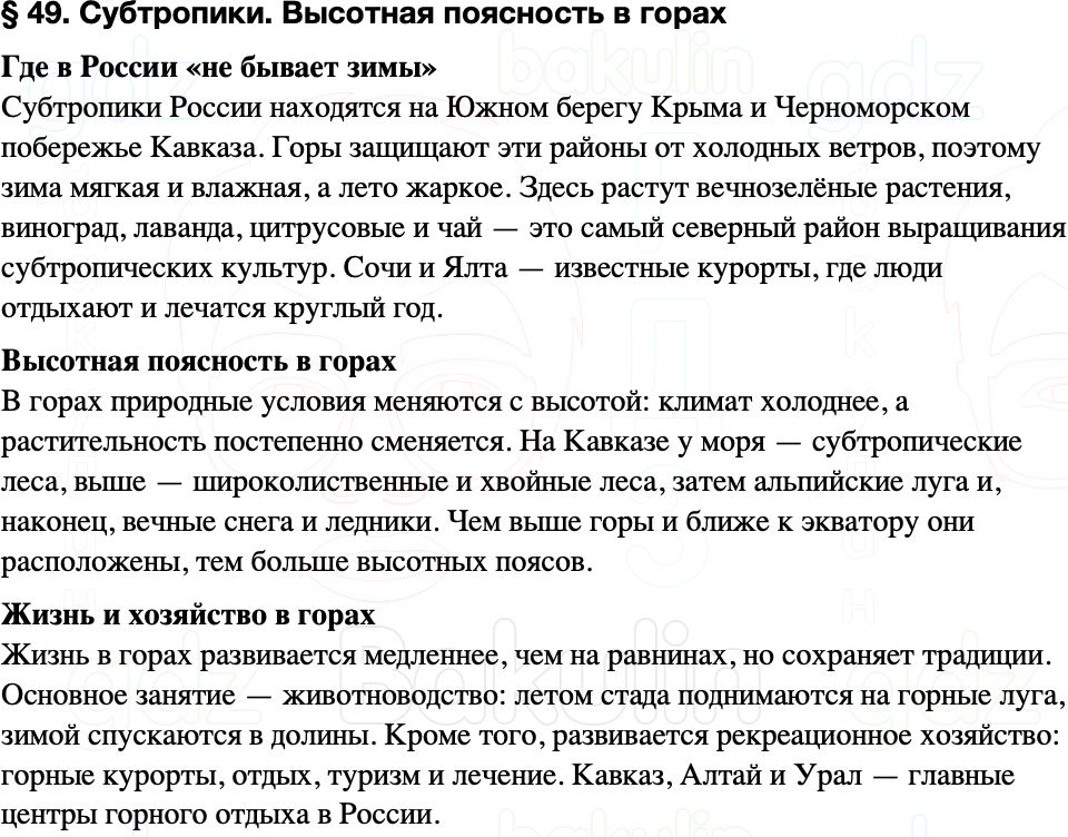 Краткое содержание пересказ Параграф 49. Субтропики. Высотная поясность в горах География 8 класс Алексеев, Николина Полярная звезда