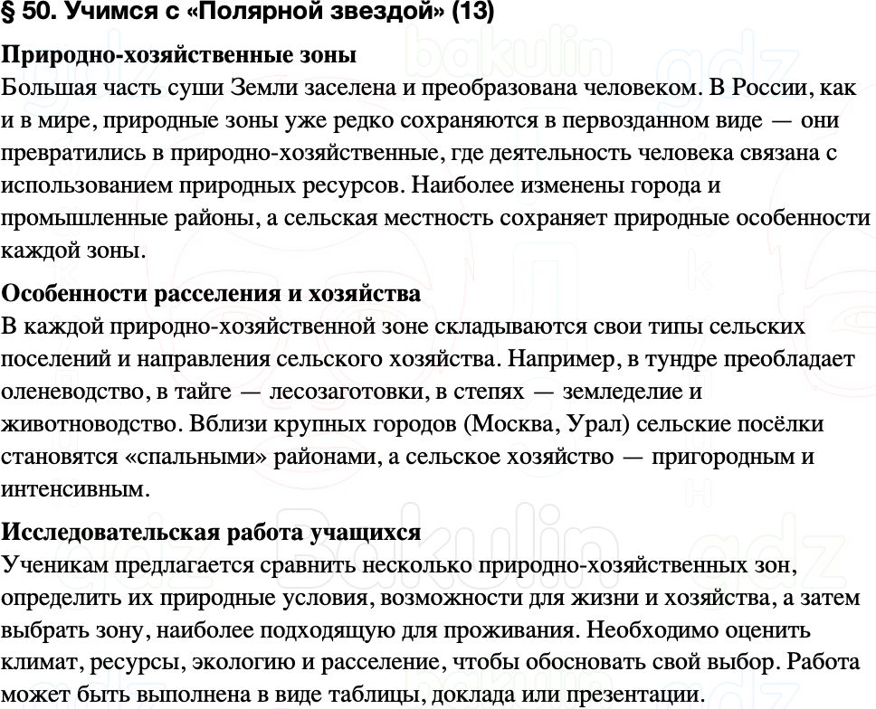 Краткое содержание пересказ Параграф 50. Учимся с «Полярной звездой» (13) География 8 класс Алексеев, Николина Полярная звезда