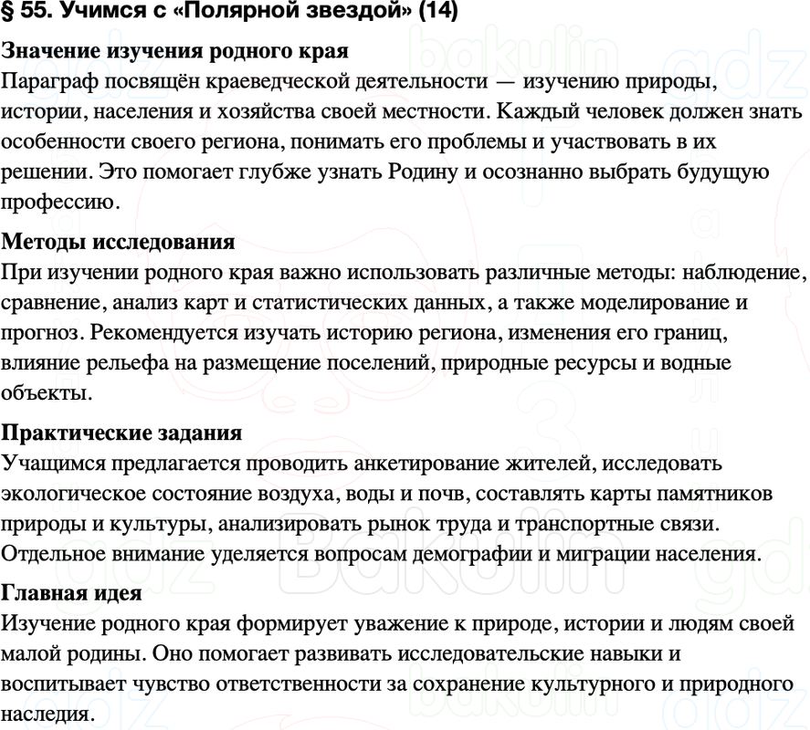 Краткое содержание пересказ Параграф 55. Учимся с «Полярной звездой» (14) География 8 класс Алексеев, Николина Полярная звезда