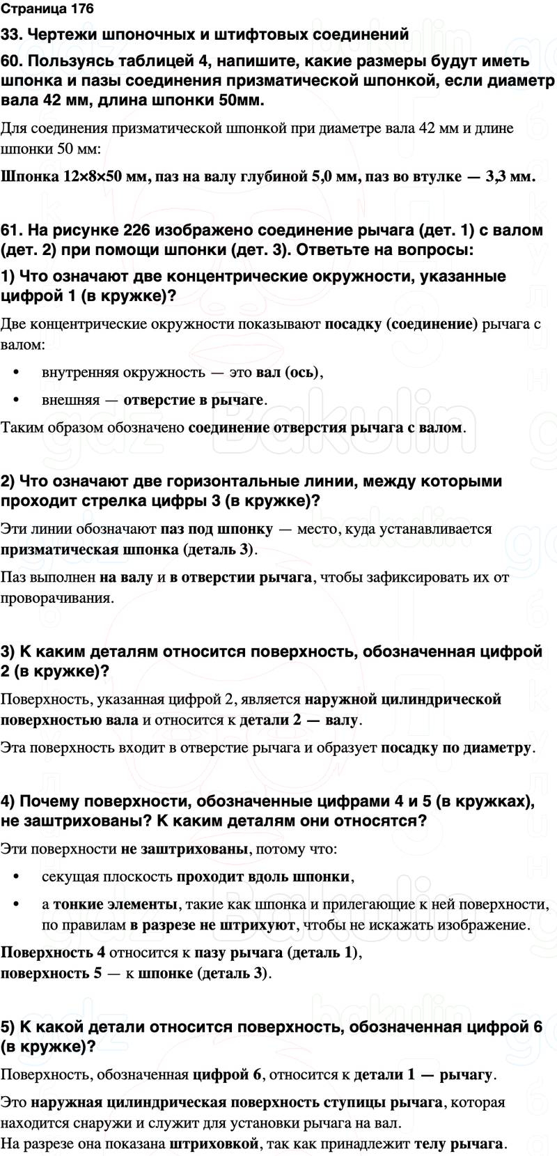 61. На рисунке 226 изображено соединение рычага (дет. 1) с валом (дет. 2) при помощи шпонки (дет. 3). Ответьте на вопросы: