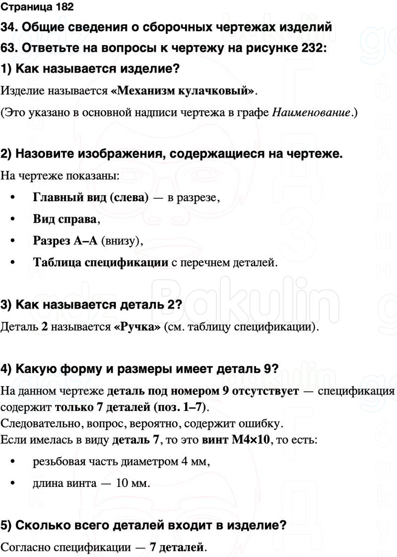 63. Ответьте на вопросы к чертежу на рисунке 232: