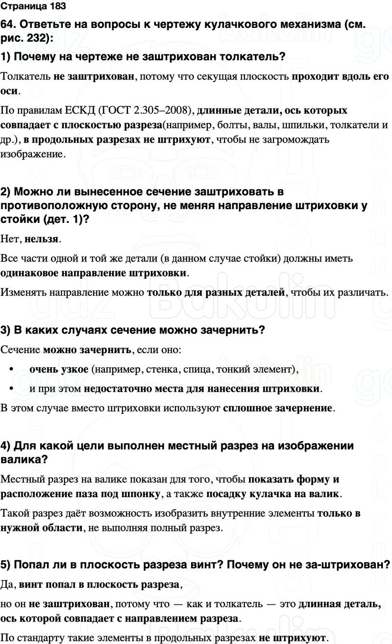 64. Ответьте на вопросы к чертежу кулачкового механизма (см. рис. 232):