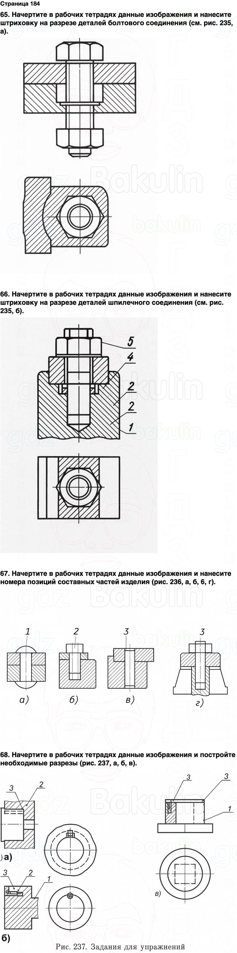 65. Начертите в рабочих тетрадях данные изображения и нанесите штриховку на разрезе деталей болтового соединения (см. рис. 235, а).