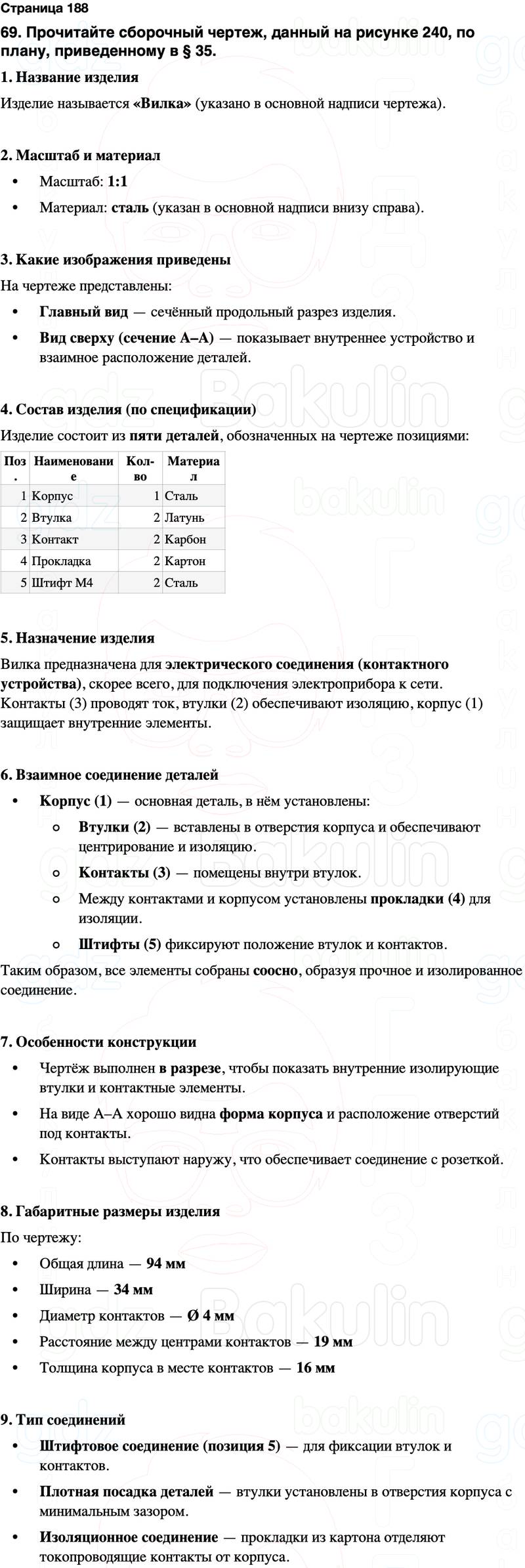 69. Прочитайте сборочный чертеж, данный на рисунке 240, по плану, приведенному в § 35.