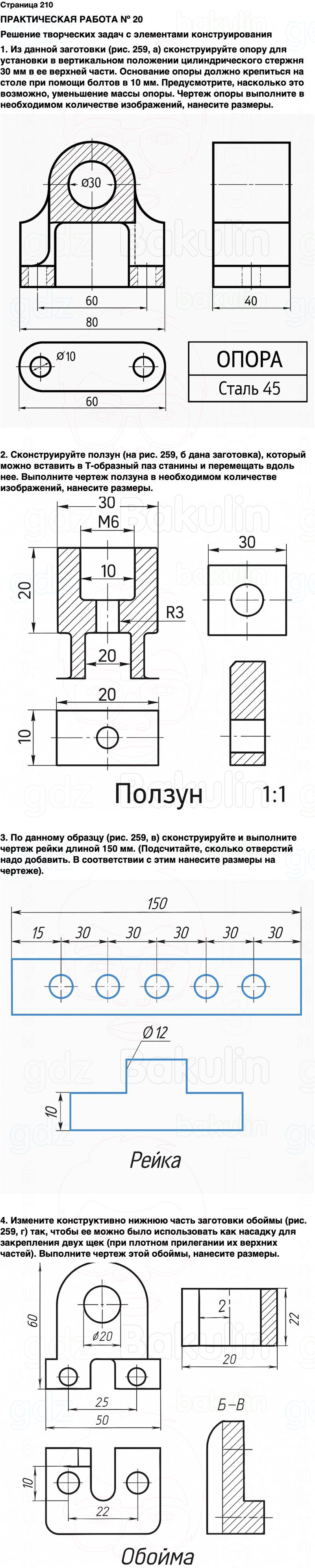 1. Из данной заготовки (рис. 259, а) сконструируйте опору для установки в вертикальном положении цилиндрического стержня