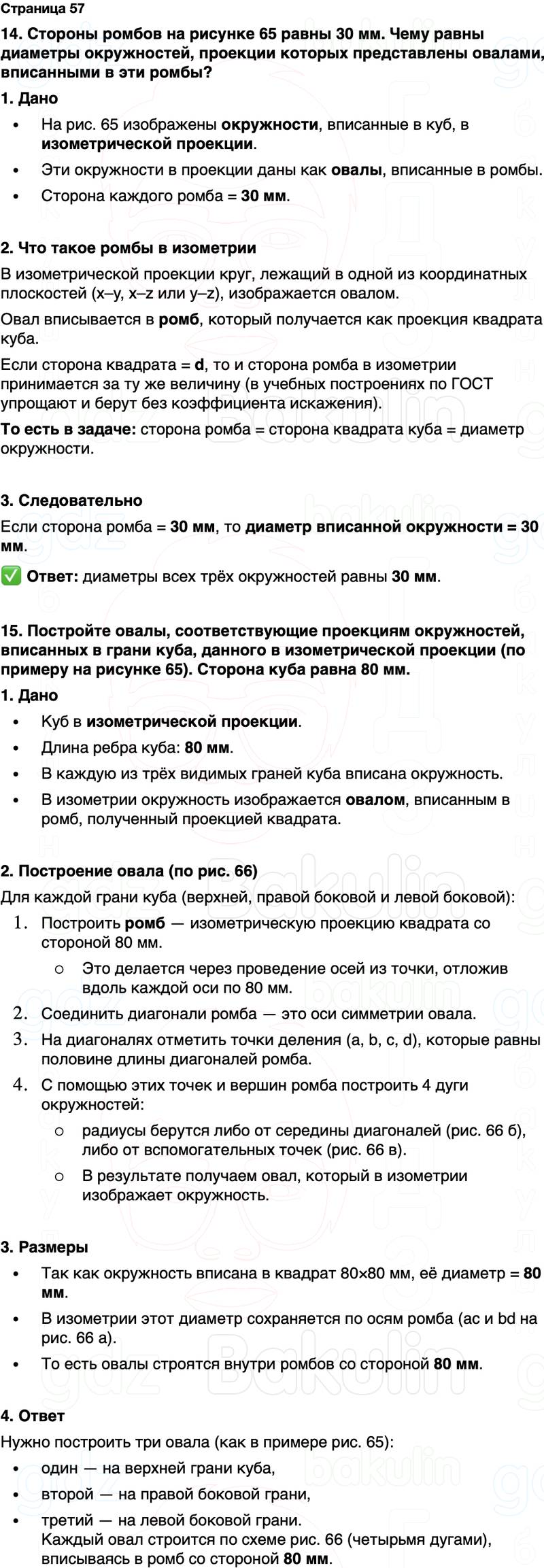 14. Стороны ромбов на рисунке 65 равны 30 мм. Чему равны диаметры окружностей, проекции которых представлены овалами, вписанными в эти ромбы?