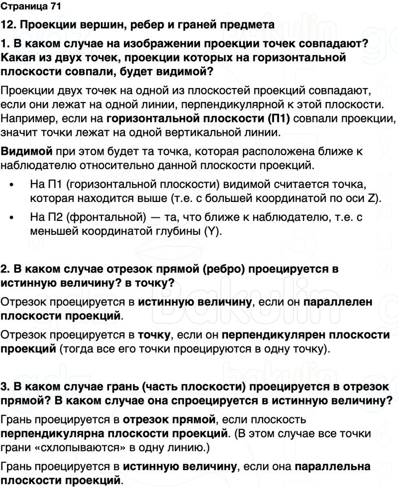 1. В каком случае на изображении проекции точек совпада-ют? Какая из двух точек, проекции которых на горизонтальной плоскости совпали, будет видимой?