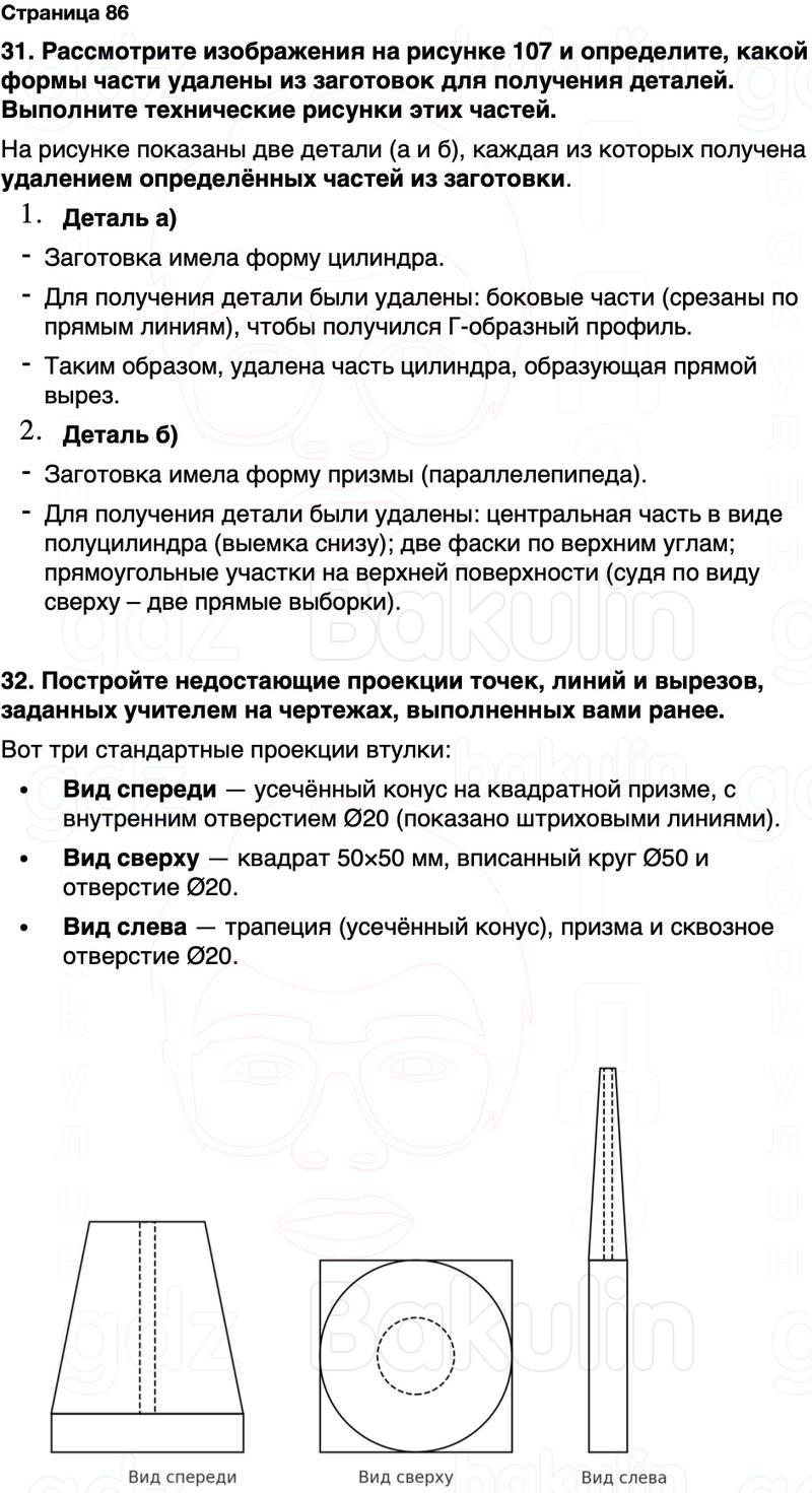 31. Рассмотрите изображения на рисунке 107 и определите, какой формы части удалены из заготовок для получения деталей. Выполните технические рисунки этих частей.