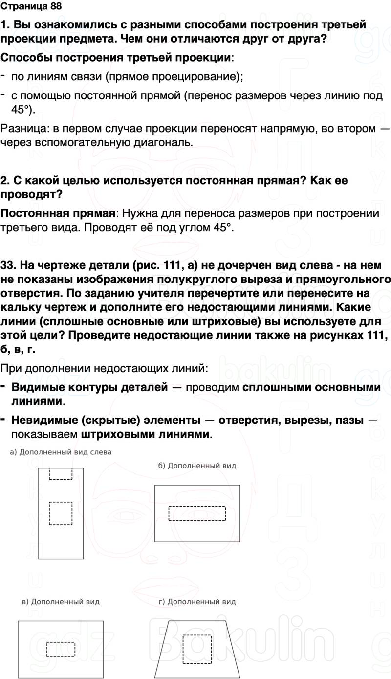 1. Вы ознакомились с разными способами построения третьей проекции предмета. Чем они отличаются друг от друга?