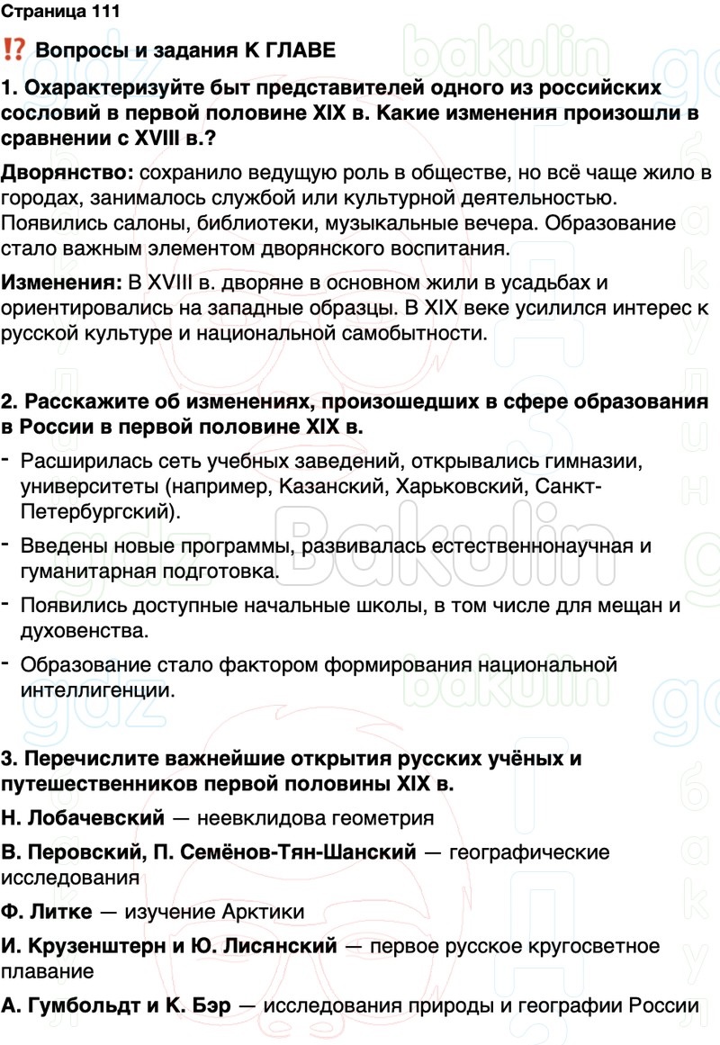 1. Охарактеризуйте быт представителей одного из российских сословий в первой половине XIX в. Какие изменения произошли в сравнении с XVIII в.?