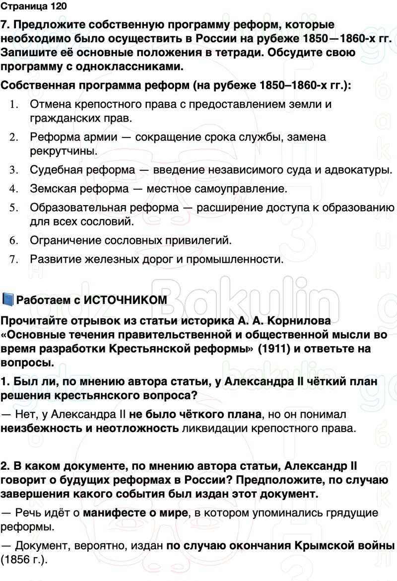 7. Предложите собственную программу реформ, которые необходимо было осуществить в России на рубеже 1850—1860-х гг. Запишите её основные положения в тетради. Обсудите свою программу с одноклассниками.
