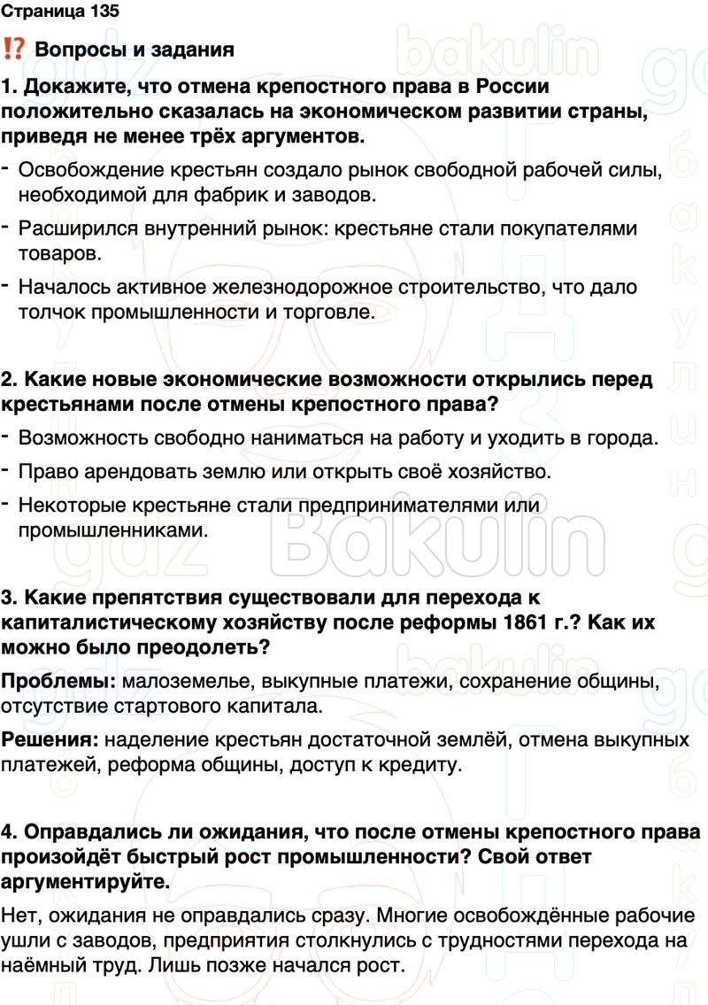 1. Докажите, что отмена крепостного права в России положительно сказалась на экономическом развитии страны, приведя не менее трёх аргументов.