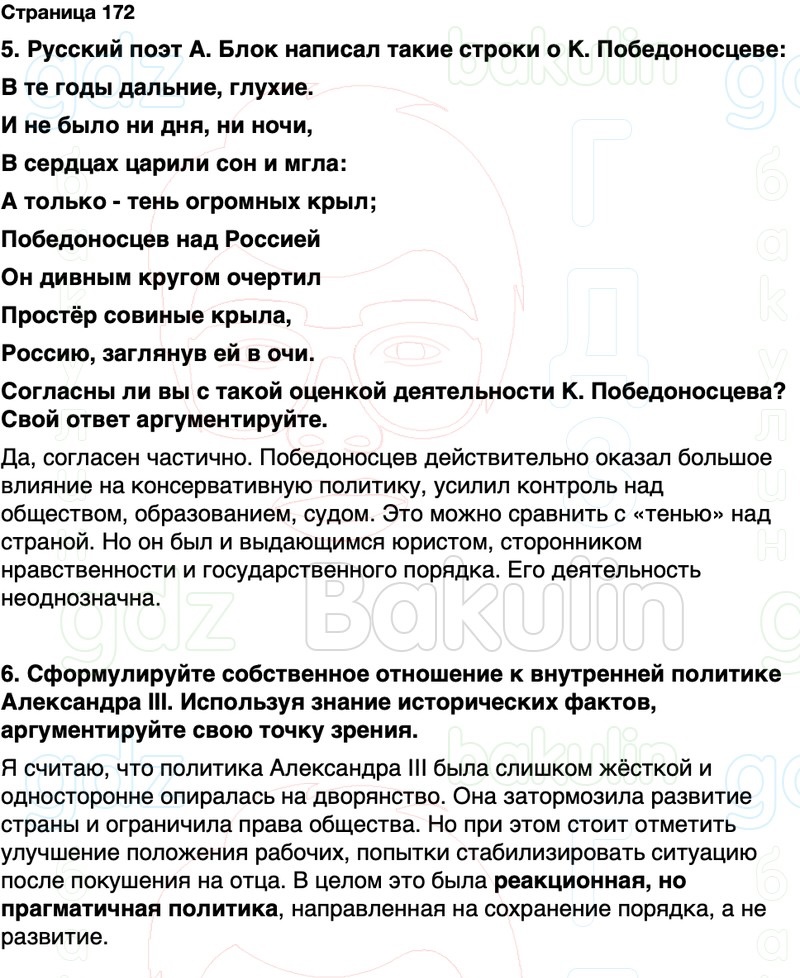 6. Сформулируйте собственное отношение к внутренней политике Александра III. Используя знание исторических фактов, аргументируйте свою точку зрения.