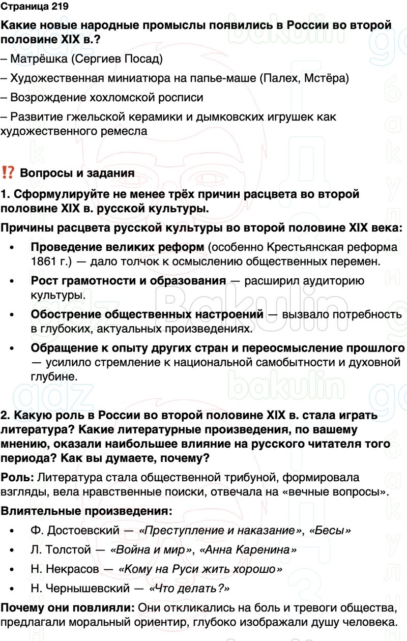 1. Сформулируйте не менее трёх причин расцвета во второй половине XIX в. русской культуры.