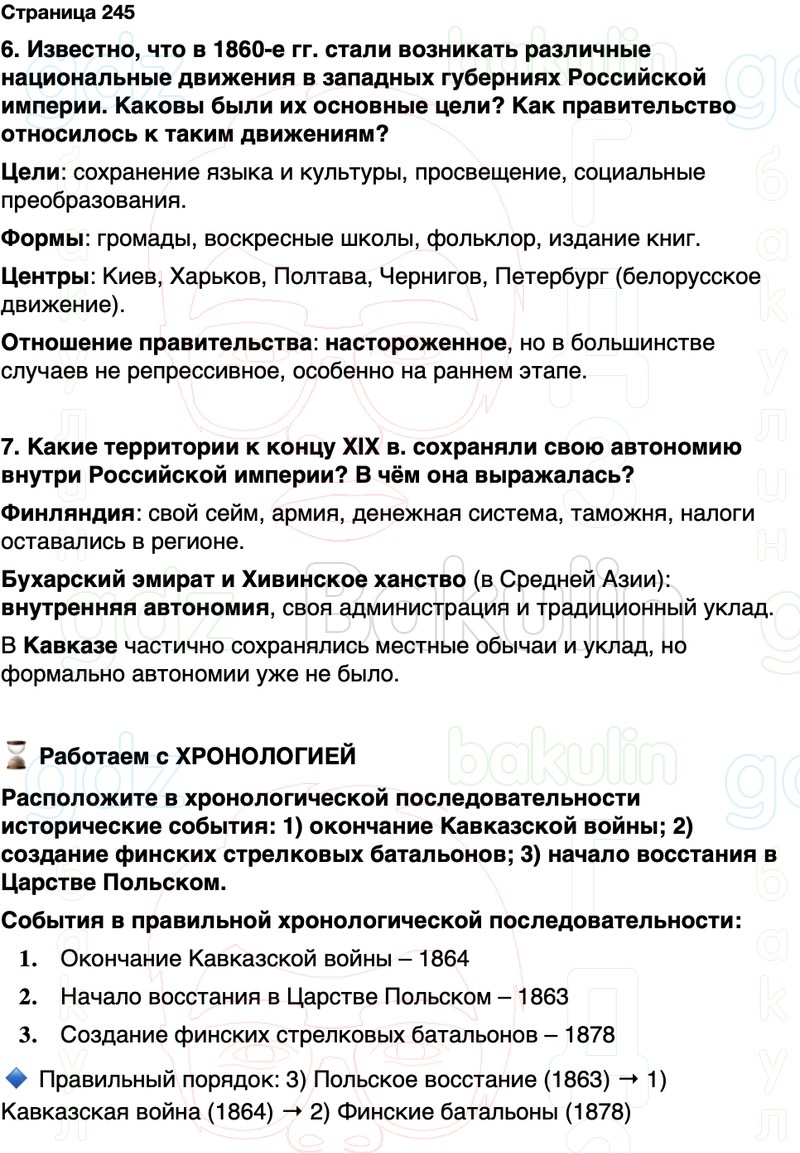 6. Известно, что в 1860-е гг. стали возникать различные национальные движения в западных губерниях Российской империи. Каковы были их основные цели? Как правительство относилось к таким движениям?