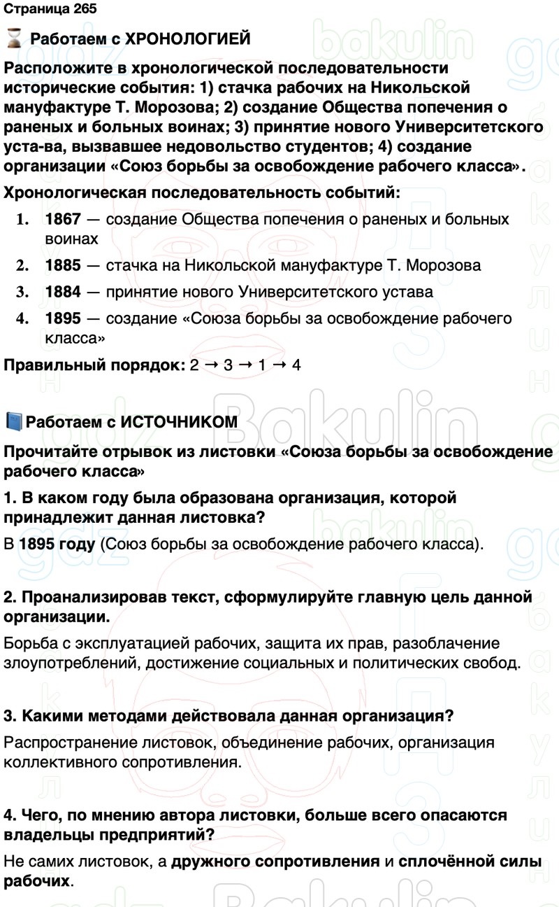 Расположите в хронологической последовательности исторические события: 1) стачка рабочих на Никольской мануфактуре Т. Морозова; 2) создание Общества попечения о раненых и больных воинах; 3) принятие нового Университетского уста-ва, вызвавшее недовольство студентов; 4) создание организации «Союз борьбы за освобождение рабочего класса».